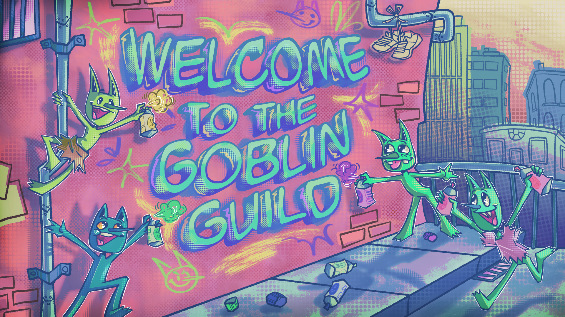 I'm just like any other human or so I thought! You see I had been working the usual 9-5 in the big city. One day I just had enough of it and I totally freaked out! Throwing chairs around, screaming, I mean the whole 9 yards. I ran out of the city and this strange voice was telling me to go deep into the forest. I did what any sane person would do and I followed the voice in my delirious mind. Anyways, I'm walking in the woods and I find this place called the "Goblin Guild". It's pretty self explanatory, it is a guild full of goblins doing their goblin thing! I was really scared by the guild at first, I mean goblins are evil, right????? Nope! Turns out gobs are pretty chill and silly colorful freaks. I mean, who would've thought. That's not all, I met the leader of the guild, this gob named Daisy Donuts. DAISY DONUTS AND I ARE LONG LOST TWINS!!!! Apparently we were separated at birth because my parents didn't want a kid that was a goblin. Jokes on them because I'm a goblin too, but I'm human appearing. So yeah, I'm having quite the identity crisis. But in the meantime, I can't wait to explore all the Goblin Guild has to offer!